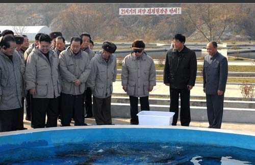 在視察位于朝鮮黃海南道的龍沿(音)養(yǎng)魚場時(shí),金正日指出,朝鮮三面環(huán)海,海水資源豐富,各個(gè)位于海邊的單位都應(yīng)該學(xué)習(xí)這家養(yǎng)魚場的成功經(jīng)驗(yàn),大力發(fā)展養(yǎng)魚事業(yè),為改善人民生活做出貢獻(xiàn)。(宋偉鋼)