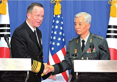 美軍參謀長聯(lián)席會議主席馬倫8日與韓國聯(lián)合參謀本部議長韓民求舉行會談,商討朝鮮半島局勢。