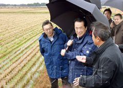 視察結(jié)束后,菅直人向記者表示:“農(nóng)地的集約化及自主經(jīng)營的想法十分重要。我還聽取了有關(guān)按戶所得補(bǔ)償制度的積極的意見,得到了復(fù)興農(nóng)業(yè)的靈感,十分有意義!