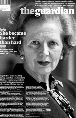 英國《衛(wèi)報》頭版有關(guān)撒切爾離世報道