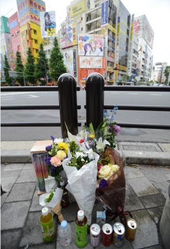 據日本《每日新聞》6月8日報道,2008年,東京秋葉原步行街發(fā)生一起當街砍人事件,共造成7人死亡,10人重傷。8日,事件迎來了發(fā)生五周年紀念日。曾是派遣公司職員的犯罪嫌疑人加藤智大以殺人罪被起訴,一審判決和二審判決均為死刑。在事件現(xiàn)場的十字路口的一個角落,從8日一早就開始有人供奉鮮花,并雙手合十祈禱。