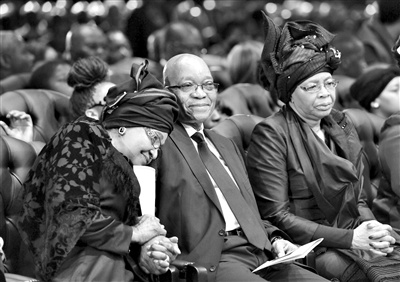 此后,曼德拉的家人代表,他在監(jiān)獄中的獄友,參加葬禮的馬拉維女總統(tǒng)班達,坦桑尼亞總統(tǒng)基奎特,以及南非總統(tǒng)祖馬等先后在葬禮上講話。祖馬還帶頭引領(lǐng)全場唱挽歌送別曼德拉。