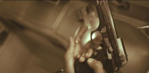 衛(wèi)生間里有人扣動手槍的扳機(jī)。(圖片來源:英國《每日郵報》網(wǎng)站)