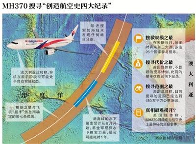 不僅花費創(chuàng)紀錄,澳大利亞副總理沃倫·特拉斯26日說,搜尋MH370已遍及450萬平方公里海域,這是“歷史上范圍最大的搜尋行動”。