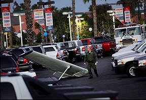 這起事故是發(fā)生在洛杉磯近郊的科洛納(Corona)市,兩家自用小型飛機(jī)在空中相撞后,其中一架飛機(jī)墜落到一個(gè)停車場(chǎng),除了兩架飛機(jī)上的各2名駕駛和2名乘客人共4人之外,墜落的飛機(jī)殘骸直接撞擊到1輛停在停車場(chǎng)上的汽車,結(jié)果車上的1人喪生。