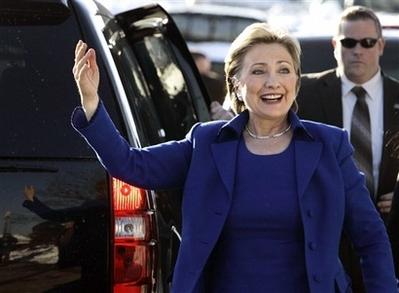 美國(guó)總統(tǒng)大選民主黨候選人希拉里16日抵達(dá)威斯康星州后向支持者問(wèn)候。