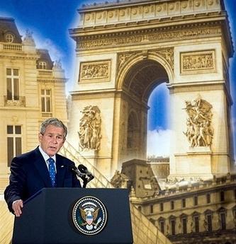 布什以小名直呼薩科齊,并說“美國的第一位朋友是法國人”,言明法國人曾協(xié)助美國人打贏獨(dú)立戰(zhàn)爭。