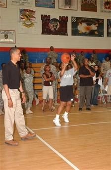 奧巴馬熱愛籃球,在出訪期間,也在阿富汗的美軍基地痛快了一場。