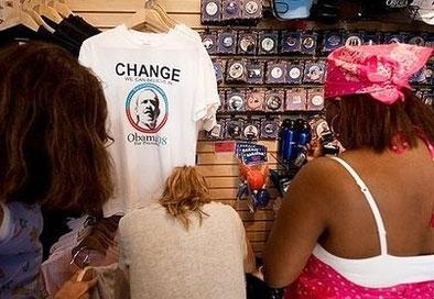 在奧巴馬陣營經(jīng)營的官方商店中,帶有“希望”標(biāo)語字樣的T恤衫正在熱賣,“希望”圖案還被雕刻成雕像,擺在民主黨大會召開地百事中心的大門邊。一名紀(jì)念品商店老板說:“大會召開這幾天,生意特別紅火,顧客蜂擁而來,商品銷量翻了一番!