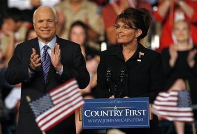 麥凱恩宣布選擇阿拉斯加州女州長(zhǎng)佩林為競(jìng)選伙伴。