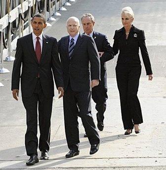 奧巴馬與麥凱恩共同前往世貿(mào)遺址進(jìn)行悼念活動(dòng)。