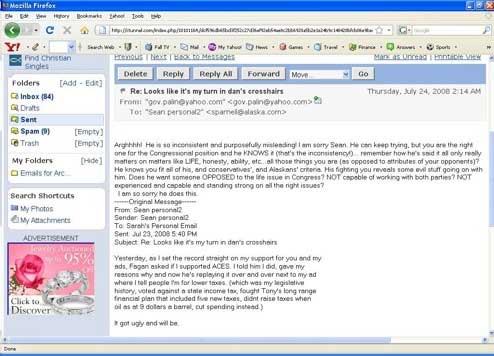 黑客公布佩林信箱中的郵件。