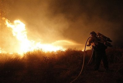 加州州長施瓦辛格宣布兩個受山火襲擊的縣進(jìn)入緊急狀態(tài),這包括洛杉磯和文圖拉兩地。