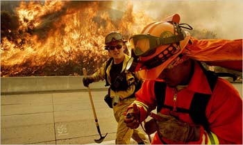 加州南海岸空氣質(zhì)量管理委員會(huì)警告,山林大火所造成的空氣污染,對(duì)南加州居民的健康有相當(dāng)?shù)奈:,建議減少外出、緊閉門窗,避免呼吸道出現(xiàn)不適的征狀,甚至引發(fā)老年人心臟等方面的疾病。山火于十三日傍晚六時(shí)燃起,當(dāng)局派出一千二百名消防員及多架直升機(jī)撲救,但由于當(dāng)?shù)亟諝鉁財(cái)z氏三十度,加上刮起時(shí)速一百一十五公里強(qiáng)風(fēng),火乘風(fēng)勢蔓延得很快,一夜間焚毀了最少六百零七公頃林木。