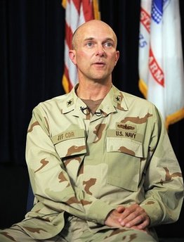12月9日,關塔那摩監(jiān)獄指揮官大衛(wèi).托馬斯接受記者采訪。