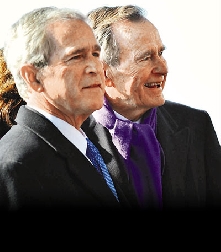 被要求評(píng)價(jià)兒子任內(nèi)表現(xiàn)時(shí),老布什形容兒子通過“911”這個(gè)史無前例的考驗(yàn),希望人們明白當(dāng)時(shí)處境。他在訪問中尊稱兒子為“總統(tǒng)”,布什則稱父親為“41”(第41任總統(tǒng))或較親切的“爸爸”。