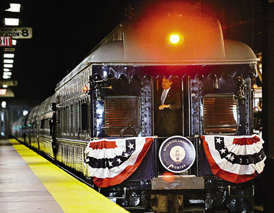 奧巴馬昨天在費(fèi)城的第30街火車站登車,開始他向西南面華盛頓進(jìn)發(fā)的旅程。與林肯不同,因?yàn)楹笳弋?dāng)年由家鄉(xiāng)伊利諾伊州出發(fā),需時(shí)長得多。奧巴馬在出發(fā)前的演說中表示,國民要締造新“獨(dú)立宣言”,從偏狹的意識(shí)形態(tài)中團(tuán)結(jié),又指國家正面對(duì)史無前例的挑戰(zhàn)。