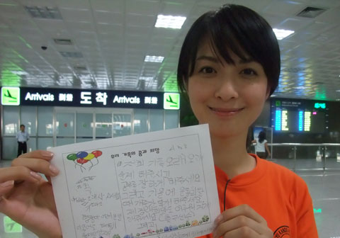 中新網(wǎng)9月19日電 16日下午日本MBS電視臺的6名攝制人員和演員松木麗娜(音)拿著一張明信片來到韓國。他們是來找那張明信片的主人的,明信片上用韓文寫有一個孩子的純樸心愿,題目是“我家人的夢想和希望”。信上寫著,“爸、媽祝你們長壽”“秋季開運動會時讓我們跑接力”“讓我的夢想實現(xiàn)(足球運動員)”,署名為徐亨鎮(zhèn)(音)。信里的字歪歪扭扭,還有不少綴字法錯誤,看來是10歲左右的兒童寫的。