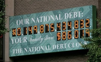 中新網(wǎng)10月10日電 作為美國國家債務(wù)的計(jì)數(shù)器,鄰近紐約市時(shí)報(bào)廣場(chǎng)的國債鐘計(jì)位數(shù)字已經(jīng)用光,無法照常記錄滾雪球般的國債金額。為應(yīng)對(duì)這一狀況,“10萬億”中的打頭數(shù)字“1”臨時(shí)擠進(jìn)左邊顯示美元符號(hào)的數(shù)格。國債鐘9日顯示,聯(lián)邦政府所欠債務(wù)已接近10.2萬億美元。