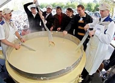 中新網(wǎng)10月27日電 綜合報道,日前在瑞士西部古城莫爾日,眾多志愿者和廚師聚集在一起,試圖制作出世界最大的干酪,創(chuàng)下世界紀(jì)錄。