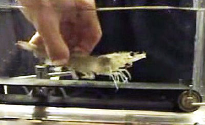 將蝦放在水中的小型跑步機(jī)上