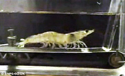 科學(xué)家為試驗(yàn)蝦在尋找食物時(shí)最遠(yuǎn)可以“旅行”的距離,日前將一只用作試驗(yàn)的蝦放在一個(gè)水中小型跑步機(jī)上。這只蝦隨后在跑步機(jī)上“奔跑”起來(lái),速度竟然高達(dá)每分鐘20多米。而為了尋找到食物,它可以在跑步機(jī)上“奔跑”長(zhǎng)達(dá)3個(gè)多小時(shí)。