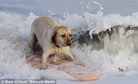 這只三歲的拉布拉多犬能夠駕著沖浪板在海浪中保持身體平衡,這對(duì)一只狗來說很難做到。小狗的主人是一對(duì)父子,他們也是沖浪愛好者。據(jù)父親介紹說,這只狗從生下來就開始和他們一起下水玩耍了。