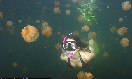 據(jù)英國媒體報道,來自美國波士頓的的計算機科學(xué)家弗拉德日前在世界上絕無僅有的無毒水母湖拍攝了自己女兒和水母嬉戲的圖片。他形容在帕勞水母湖里游泳如同置身于果凍中,“我們越往湖中游,就有越多的水母將我們包圍,看著云集的水母,真是令人愉快!