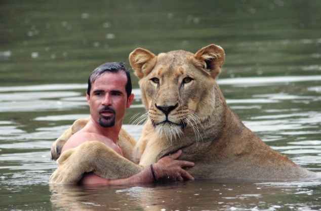 現(xiàn)年34歲的動物學(xué)家凱文經(jīng)常采用不同尋常的方法(一起玩、一起睡覺、一起游泳等等)來和常人畏懼的動物進行交流,同時和動物們建立了很好的個人感情。