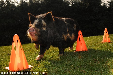 “蘇”的名字來(lái)自約翰尼-卡什的流行歌曲《一個(gè)名叫蘇的男孩》!疤K”已學(xué)會(huì)按照指令與人握手,通過(guò)隧道、在圓錐體周?chē)@行,爬上坡道,甚至能完成從一數(shù)到八的數(shù)數(shù)!疤K”的主人溫迪-斯科達(dá)摩里稱(chēng),“蘇”很有天賦。她相信,“蘇”不僅能在靈活性測(cè)試中擊敗犬類(lèi),而且能像一部電影中的明星豬那樣學(xué)會(huì)如何管理羊群。