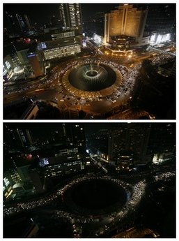 熄燈活動(dòng)由世界自然保護(hù)基金(WWF)于去年在全球發(fā)起。隨著人們對(duì)全球變暖問(wèn)題關(guān)注程度的提高,今年參加熄燈活動(dòng)的城市數(shù)量是去年的7倍。