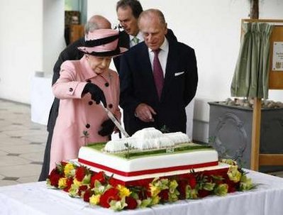 5日女王和其丈夫到英國(guó)“巧園植物園”出席巧園成立250周年慶祝會(huì)。園方準(zhǔn)備了一個(gè)長(zhǎng)方形大蛋糕,下面是鮮花,上面是白色奶油。頂上做成巧園最有名的建筑,大溫室的樣子。蛋糕店老板把刀交給女王。女王一拿起刀,菲利普就在旁邊說(shuō),“好好切,用點(diǎn)力”。