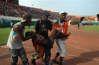 科特迪瓦內(nèi)政部長(zhǎng)塔戈羅表示,在科特迪瓦隊(duì)主場(chǎng)對(duì)陣馬拉維隊(duì)的比賽開始前,球迷互相推搡,最后爆發(fā)騷亂,發(fā)生踩踏事件。塔戈羅稱:“因?yàn)楸荣惣磳㈤_始,球迷們爭(zhēng)搶著入場(chǎng),每個(gè)人都想進(jìn)去(導(dǎo)致事故發(fā)生)。”