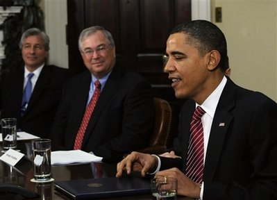 奧巴馬曾經(jīng)指責(zé)這些領(lǐng)取高額花紅的“肥貓銀行家”,因此他借這次會(huì)面促使這些銀行擴(kuò)大向小企業(yè)的貸款,以及停止干擾立法整頓金融管理系統(tǒng)的工作。
