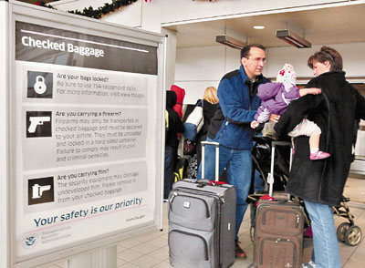 中新網(wǎng)12月28日電 美國(guó)圣誕炸機(jī)驚魂再次敲響民航恐襲危機(jī)警報(bào),全球航企及各大小機(jī)場(chǎng)自周六(26日)起,跟隨美國(guó)當(dāng)局要求,全面提升飛美航班安檢等級(jí),令乘客出境檢查時(shí)間大幅延長(zhǎng),造成混亂,英國(guó)多個(gè)機(jī)場(chǎng)甚至有航班延誤長(zhǎng)達(dá)5小時(shí)之久。