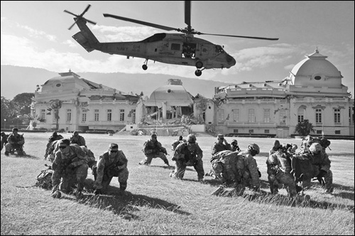 19日,美國(guó)海軍陸戰(zhàn)隊(duì)在太子港西南登陸,與聯(lián)合國(guó)維和部隊(duì)旗下的斯里蘭卡軍隊(duì)會(huì)師,攜手維持海地的秩序。隨著大批美軍現(xiàn)身海地,國(guó)際社會(huì)批評(píng)其“占領(lǐng)”海地的聲音也越來(lái)越響亮。