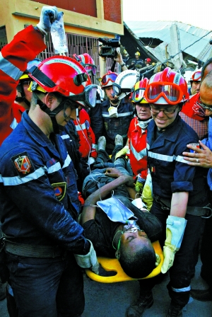 法國救援隊23日從瓦礫里救出了一名24歲的海地男子。這名男子已經被埋了11天。救援隊員們激動地說:“這簡直就是生命奇跡。”