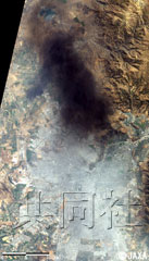 衛(wèi)星圖像拍攝于地震發(fā)生后約8小時(shí)。圖像中黑煙從離圣地亞哥中心部約20公里的西北部冒出并向東擴(kuò)散。據(jù)介紹,地震前拍攝的圖像顯示在起火處附近有像工廠一樣的建筑。