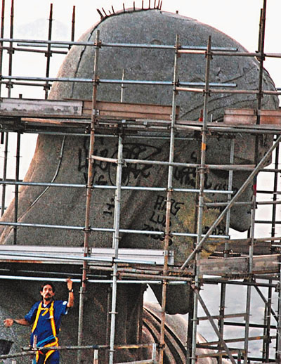 中新網4月18日電 據香港《文匯報》報道,巴西里約熱內盧連日豪雨觸發(fā)泥石流,多處地方坍塌,當局暫時關閉地標耶穌山,在耶穌像周圍筑起棚架,為這個世界七大奇景之一進行修葺。怎料,有人闖入用黑色噴漆在雕像頭、胸和手涂鴉,寫上暗喻暴力和犯罪的字句,如“貓兒不在,老鼠出擊”等。