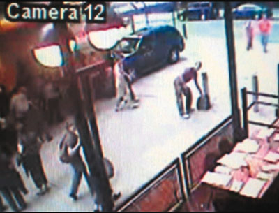 紐約警方在距現(xiàn)場(chǎng)半個(gè)街區(qū)的閉路電視錄影中,發(fā)現(xiàn)一名懷疑是疑兇的白人男子。片段中,男子一邊回頭望向涉案日產(chǎn)Pathfinder的方向,一邊脫掉深色T恤,露出里面的紅色T恤,然后將深色T恤放入手提包后離開。