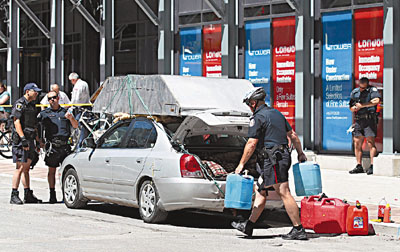 中新網(wǎng)6月26日電 據(jù)香港《文匯報》26日報道,G20峰會前夕,各成員國領(lǐng)袖陸續(xù)抵,加拿大警方在多倫多市采取極嚴(yán)密保安措施。連日來已有3名可疑人士被捕,其中1名53歲男子前日駕車經(jīng)過峰會會場禁區(qū),由于車頂綁著1個鋼制儲物箱,模樣怪異,引起警方注意。警察攔車檢查,赫然發(fā)現(xiàn)車上有十字弓、電鋸、棒球棍、大錘外,還有多種不明液體。警方?jīng)]收這批物品,并將他拘捕。