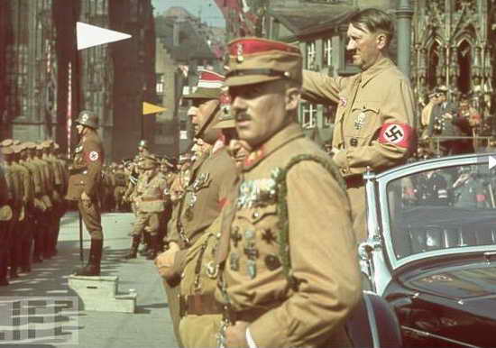 美國《生活》雜志6月4日刊登了德國攝影師雨果-杰格拍攝的一組從未被公開的德國納粹頭目希特勒的彩照。雨果-杰格1936年至1945年期間被允許跟隨希特勒一同活動。作為希特勒的私人攝影師之一,他用彩色照片記錄了希特勒和其親信們的小型聚會、公開活動,甚至是私人時刻。在三十年代晚期,只有很少的攝影師使用彩色照片,杰格是最早使用彩色照片的攝影師之一,希特勒對他所看到的照片感到滿意。希特勒曾對杰格稱:“未來屬于彩色攝影!