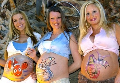 現(xiàn)在越來越多的孕婦作畫裝點大肚子,肚子上的風(fēng)景也是不設(shè)限,包括著名的卡通人物,小碎花,甚至包括未出生的嬰兒等。