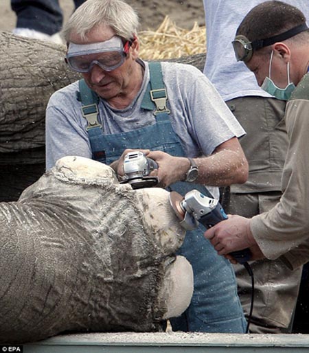 這只名為“男孩”的亞洲象今年已經(jīng)39歲了,他的腳趾甲太長(zhǎng)了以至于他一直感覺(jué)很不爽,動(dòng)物園的工作人員看在眼里疼在心上,專(zhuān)門(mén)花重金從德國(guó)請(qǐng)來(lái)一名獸醫(yī)和他的多位助手,為“男孩”修理指甲。