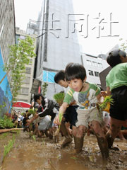 中新網5月30日電 高級品牌店羅列的東京銀座一丁目日前出現(xiàn)了水田!霸阢y座種大米2009”活動30日正式拉開帷幕。