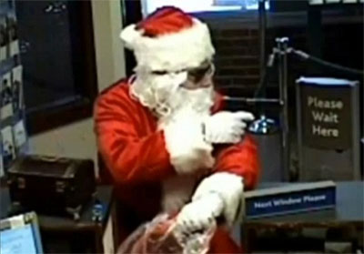 中新網(wǎng)12月24日電 據(jù)英國媒體報(bào)道,美國一名男子打扮成慈祥的圣誕老人模樣背著一個(gè)大麻袋走入銀行,正在辦理業(yè)務(wù)的顧客一陣欣喜,以為他要為大家發(fā)禮物,沒想到這個(gè)“圣誕老人”竟然掏出一把槍,大喊一聲:搶劫了!
