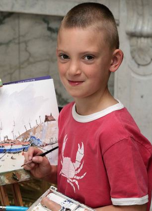 據(jù)悉,這位名叫基隆•威廉姆森(Kieron Williamson)的男童居住在英國東部小城霍爾特,他有著令其他畫家傾羨的藝術(shù)才華和繪畫技巧。當?shù)厝税阉彤吋铀飨啾龋笳哂啄瓿刹挪⒊蔀?0世紀最受矚目的畫家。