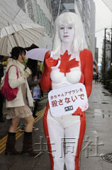 中新網(wǎng)3月25日電 據(jù)日本共同社報(bào)道,美國(guó)動(dòng)物保護(hù)組織“PETA”的一名加拿大籍女性成員24日在東京赤坂的加拿大駐日本大使館前,以全身僅穿內(nèi)衣的方式抗議捕獵海豹獲取毛皮。