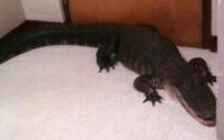 這只鱷魚當(dāng)?shù)貢r(shí)間7日上午大搖大擺的現(xiàn)身佛羅里達(dá)坦帕市一所中學(xué)自助餐廳。教職員工設(shè)法將鱷魚引到男廁所,之后鎖上門等待野生動(dòng)物保護(hù)人員到來。