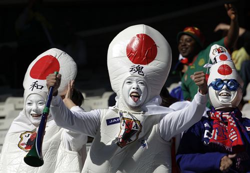 不過,除了這些美女,世界杯賽場的女球迷也以一些令人匪夷所思的造型出現在公眾面前。報道指出,以日本女球迷為例,全身“裹粽子”般包得緊緊地,如同將相撲的服裝穿在身上,令人看不懂她們追求的效果是什么?瓷先ィ齻兊脑煨拖袷恰鞍踩住,又像是保齡球瓶,和足球賽仿佛搭不上調。不過,唯一能確定的是,她們在冬天的南非應該不會受涼。